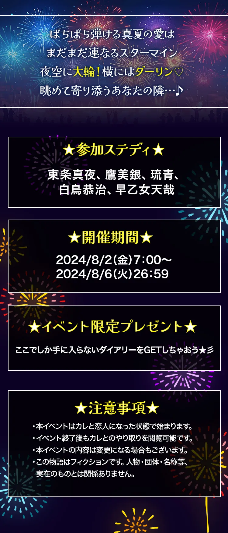 ぱちぱち弾ける真夏の愛はまだまだ連なるスターマイン