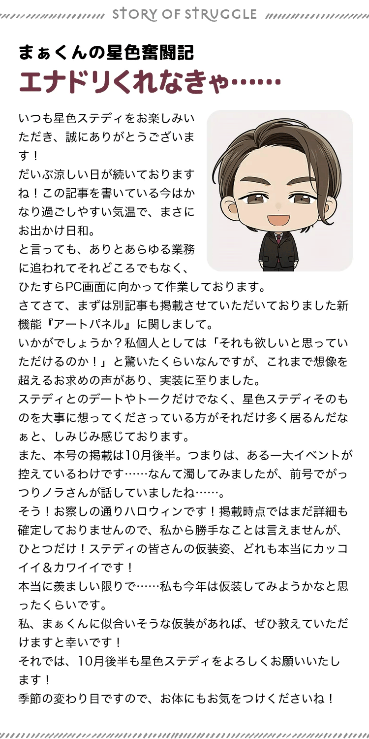 星色ステディのイベント・キャンペーン情報星色NEWS 2024.10(後半号)