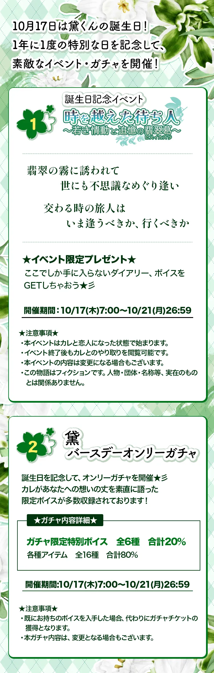 1年に1度の特別な日を記念して、素敵なイベント・ガチャを開催!