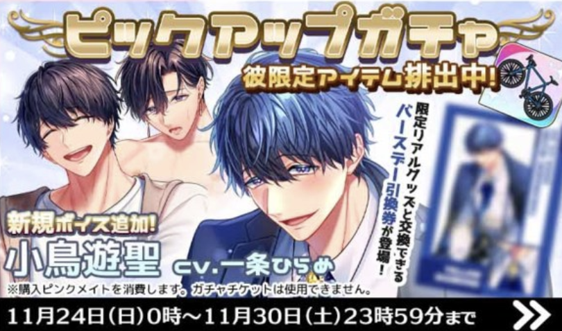 彼の限定ボイスや限定アイテムが排出されるガチャが開催中です。