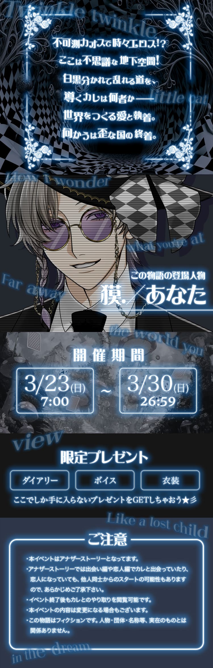 星色ステディのイベント・キャンペーン情報モノクロワンダーアンダーランド(獏.)